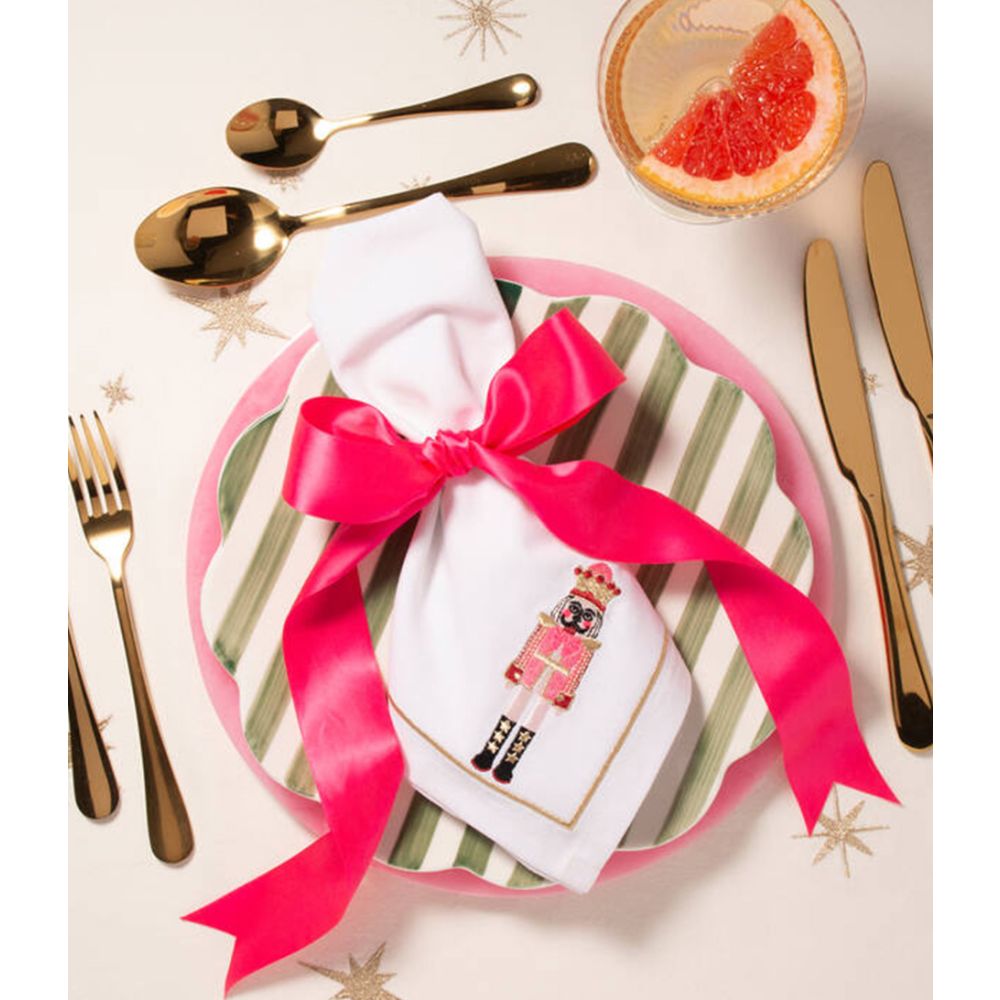Pack of 2 cotton linen blend embroidered napkins with nutcracker design
