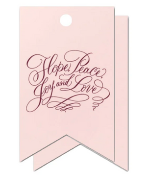 "Hope, Peace, Joy, & Love " Pink and Burgundy Foil printed Holiday Gift Tag