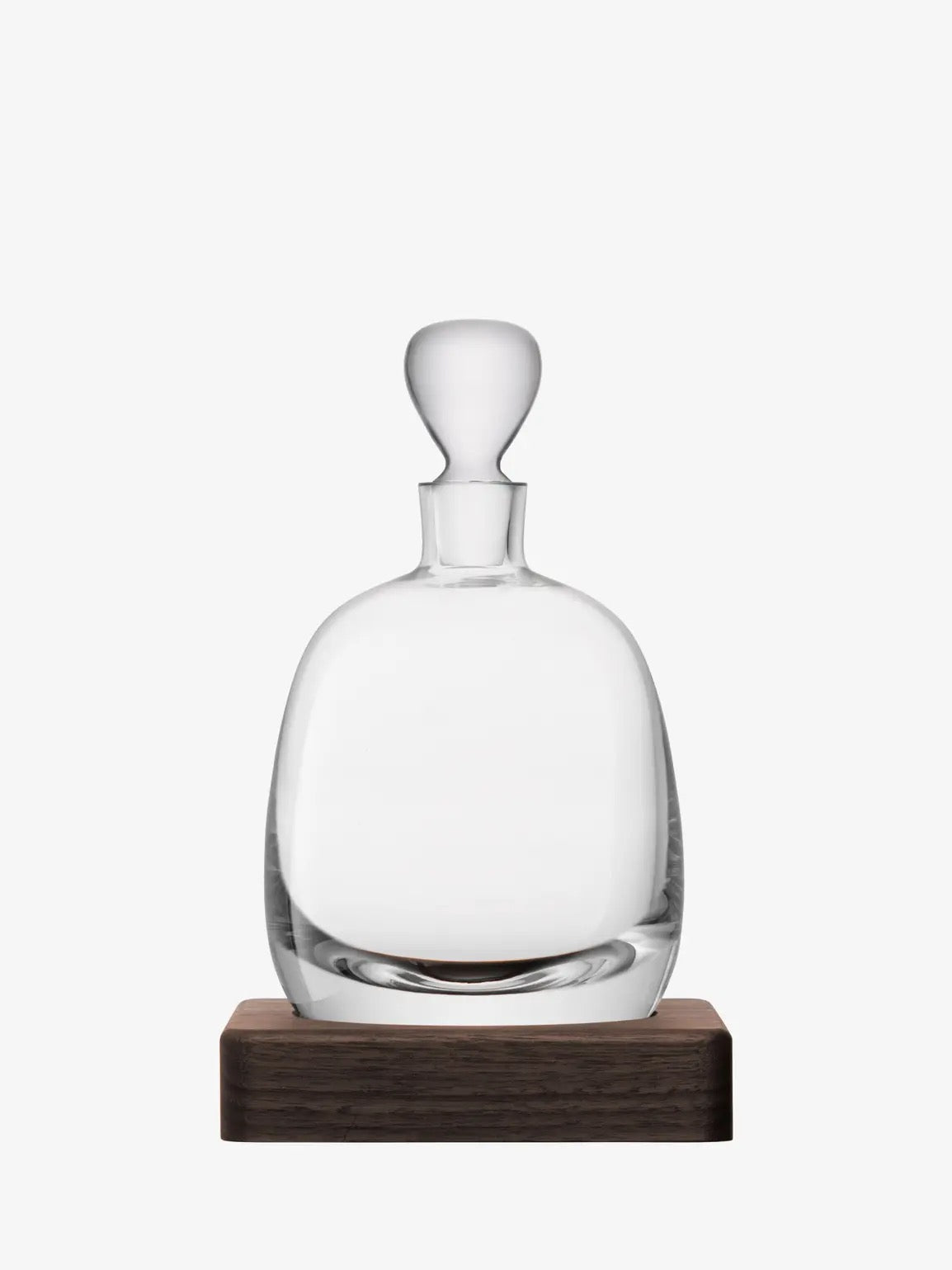 This combination set includes two tumblers, two nosing glasses with covers, two walnut coasters, a water jug, a decanter with walnut base and a walnut display tray. Expert craftsmanship is required to mouth blow and finish the glass by hand.