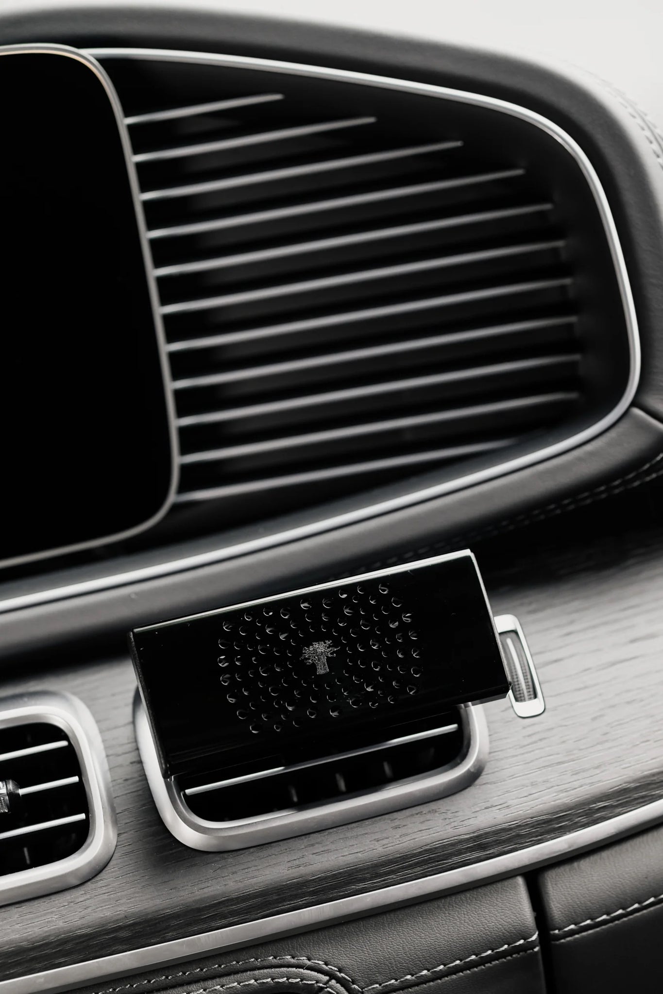 The black metal car perfume diffuser, developed with precision and elegance over nearly two years, discreetly attaches to your vehicle's ventilation system. It diffuses a rich fragrance encapsulated in polymer beads for about two to three months, adding a touch of modernity to each journey. Paired with the Black Pearls fragrance, it provides a sophisticated olfactory experience. When the initial refill runs out, reinvent your car's ambiance with our available refills.