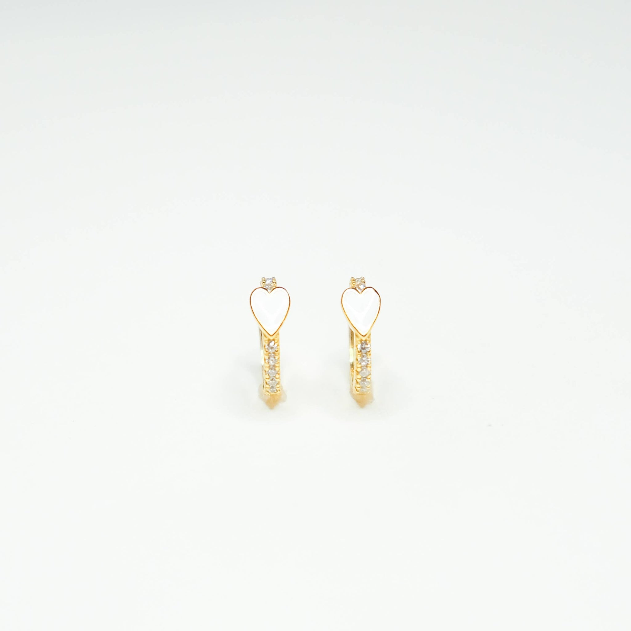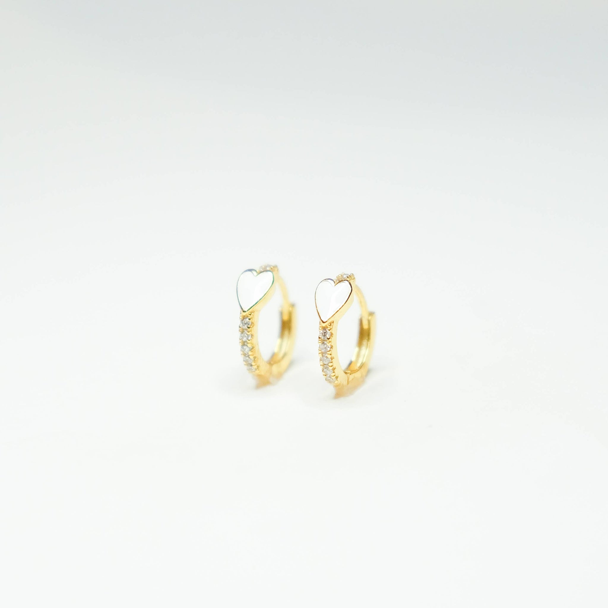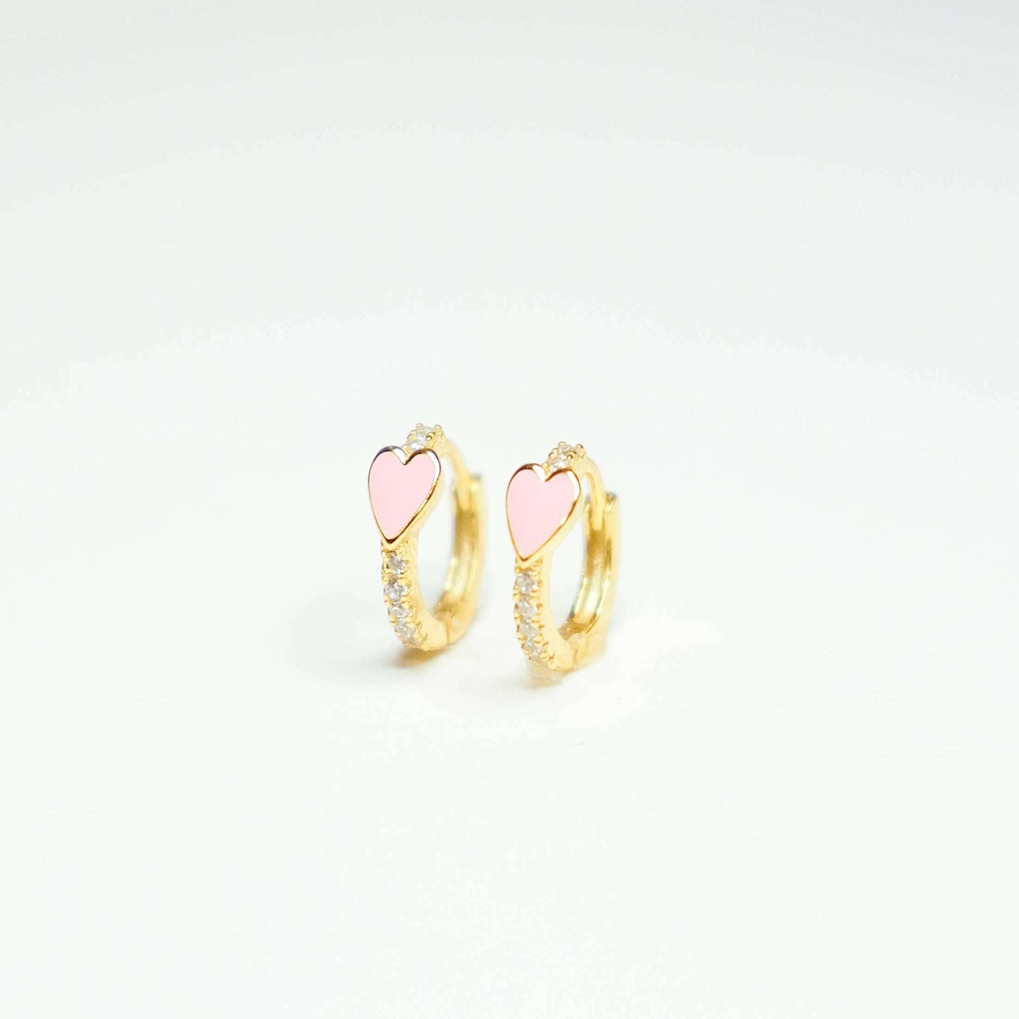 Sterling Silver, 18k Gold Plated Huggie, coquette, earring, hoop, heart, gold, pink