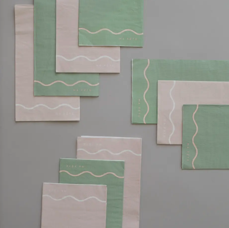 Our pink and mint paper party napkins come in two delicate colors with contrasting wave trim. Because who doesn’t want to look fancy when they’re wiping frosting from their mouth? - Pack of 16