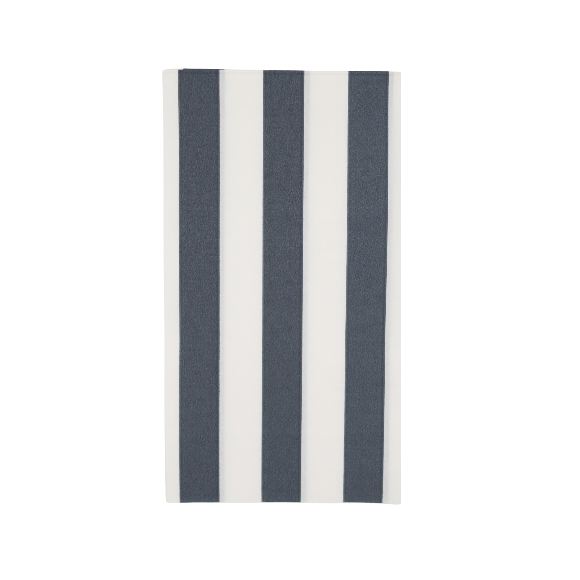Midnight Blue Cabana Stripe Guest Towels from the Bonjour Fête Signature Line. The perfect deep navy blue for your tabletop.