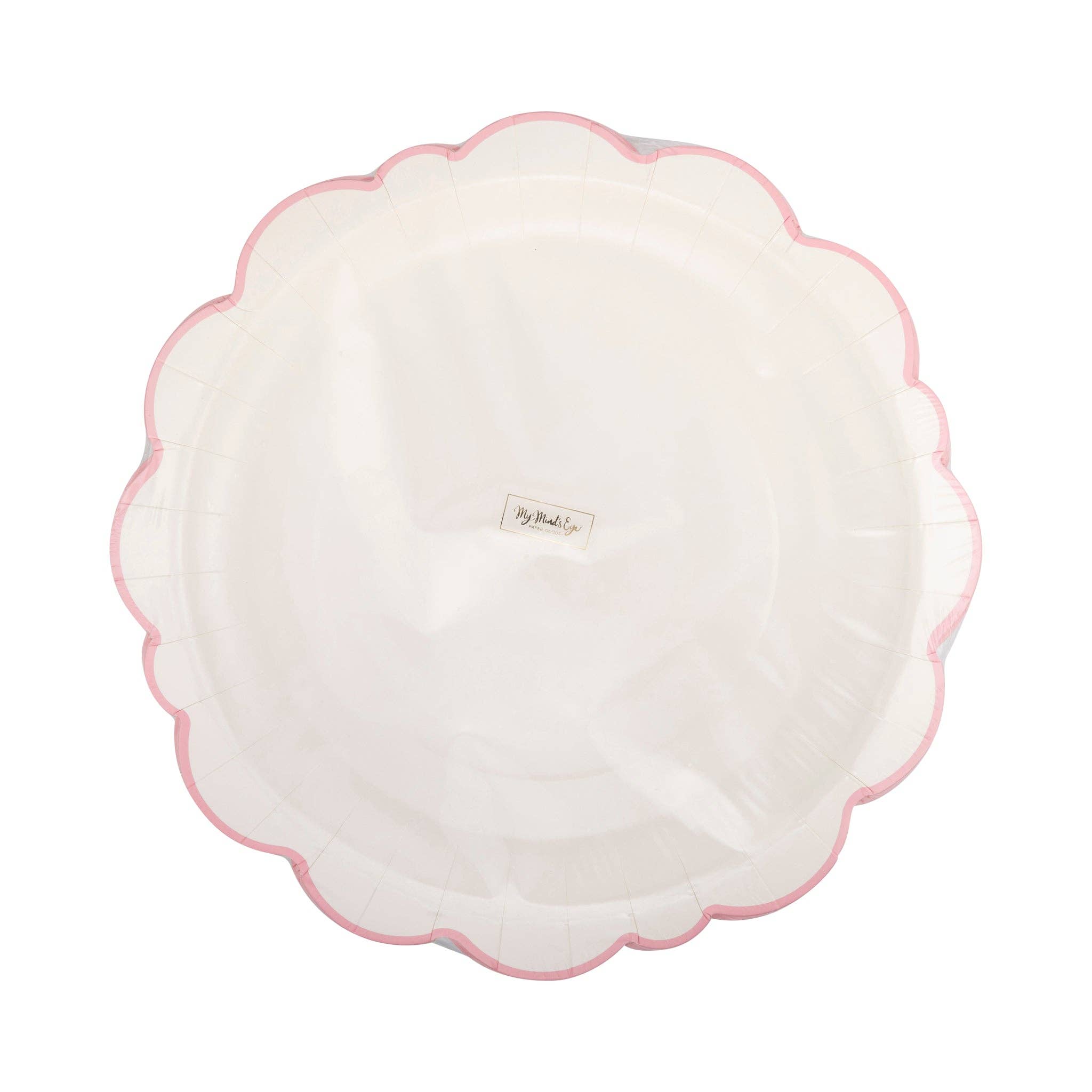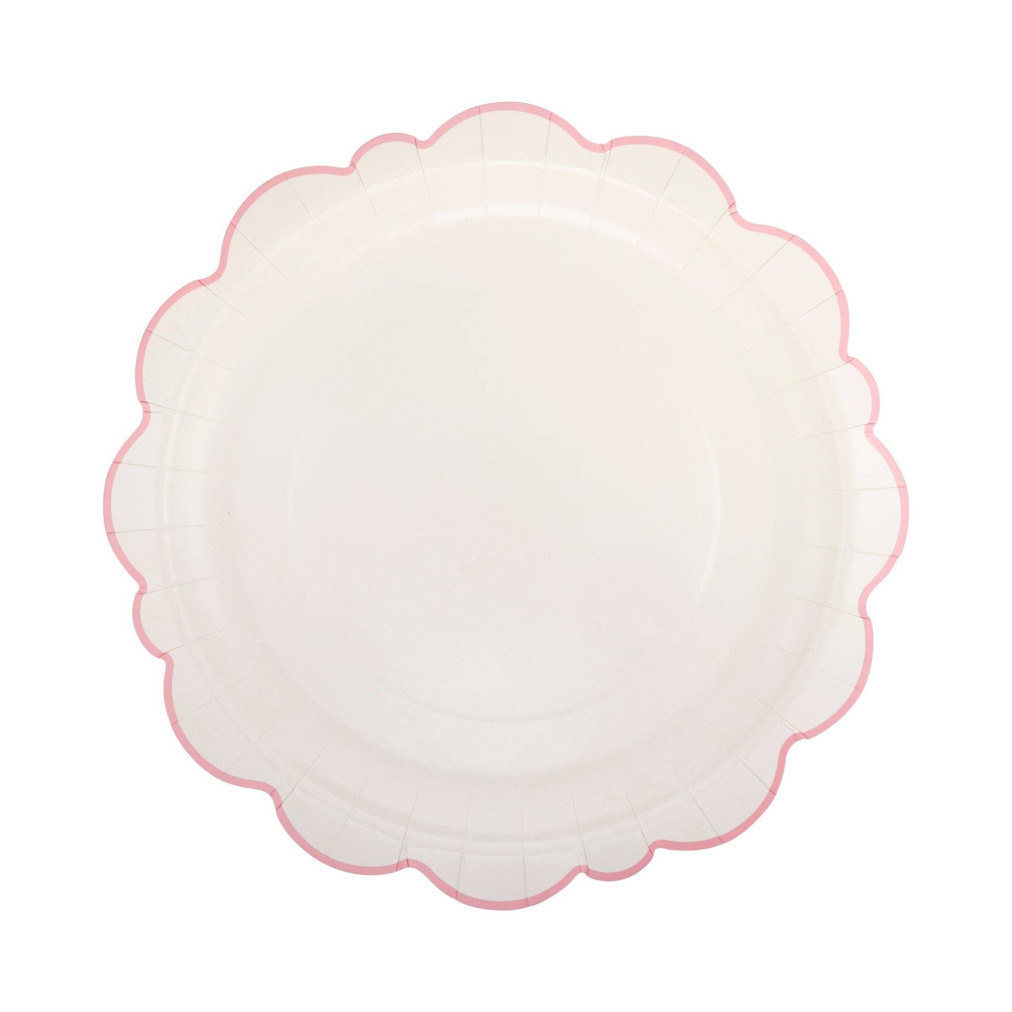 Add a touch of romance to your table with our Pembroke Pink Edge Scallop 12" Plate! Featuring a delicate design, this plate is perfect for Valentine's Day or any special occasion. A charming addition to any collection, it's sure to make a statement with its playful pink edges. Love at first sight!