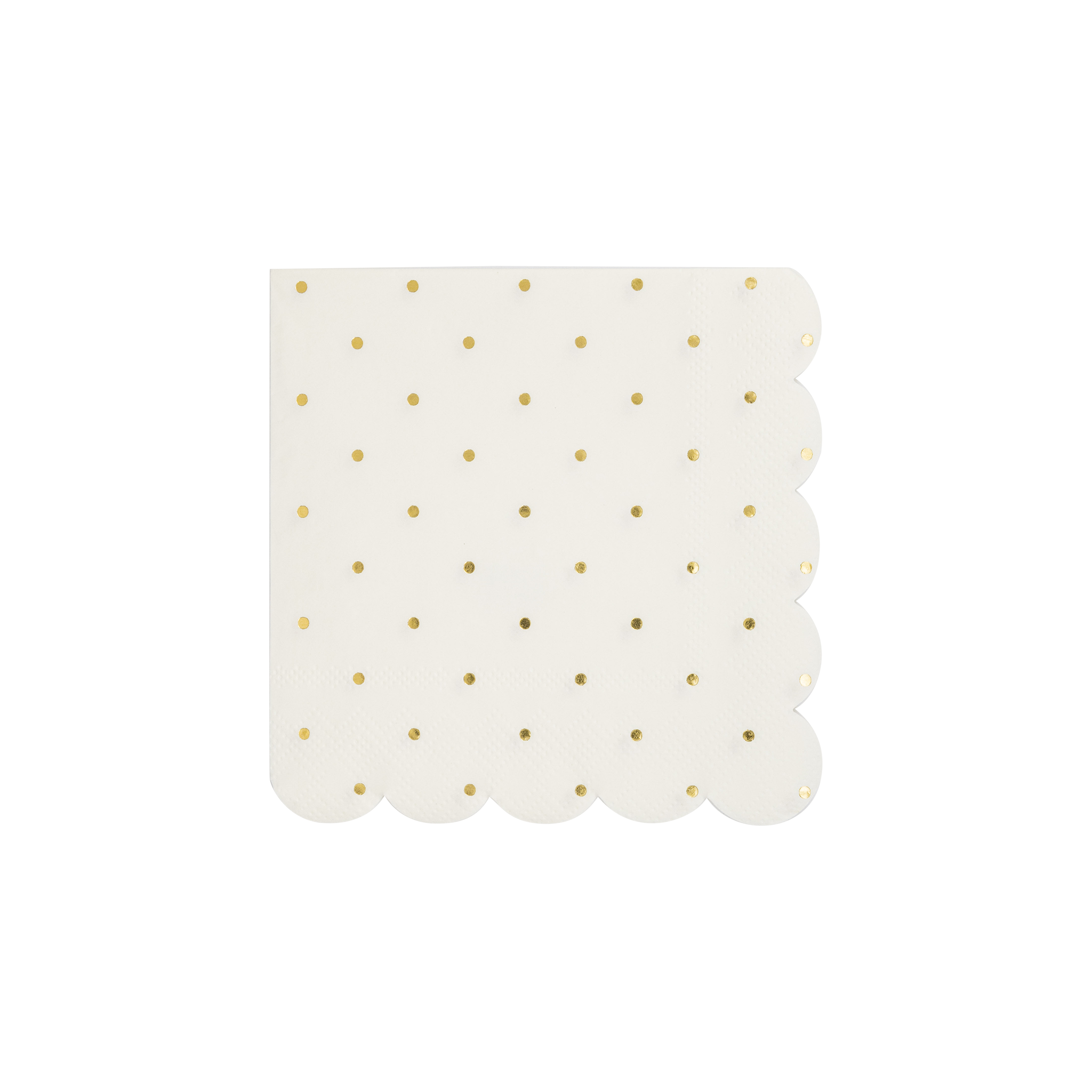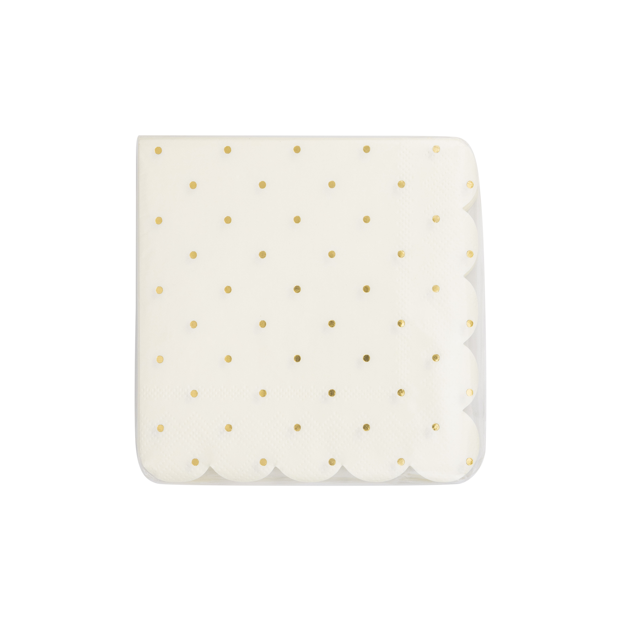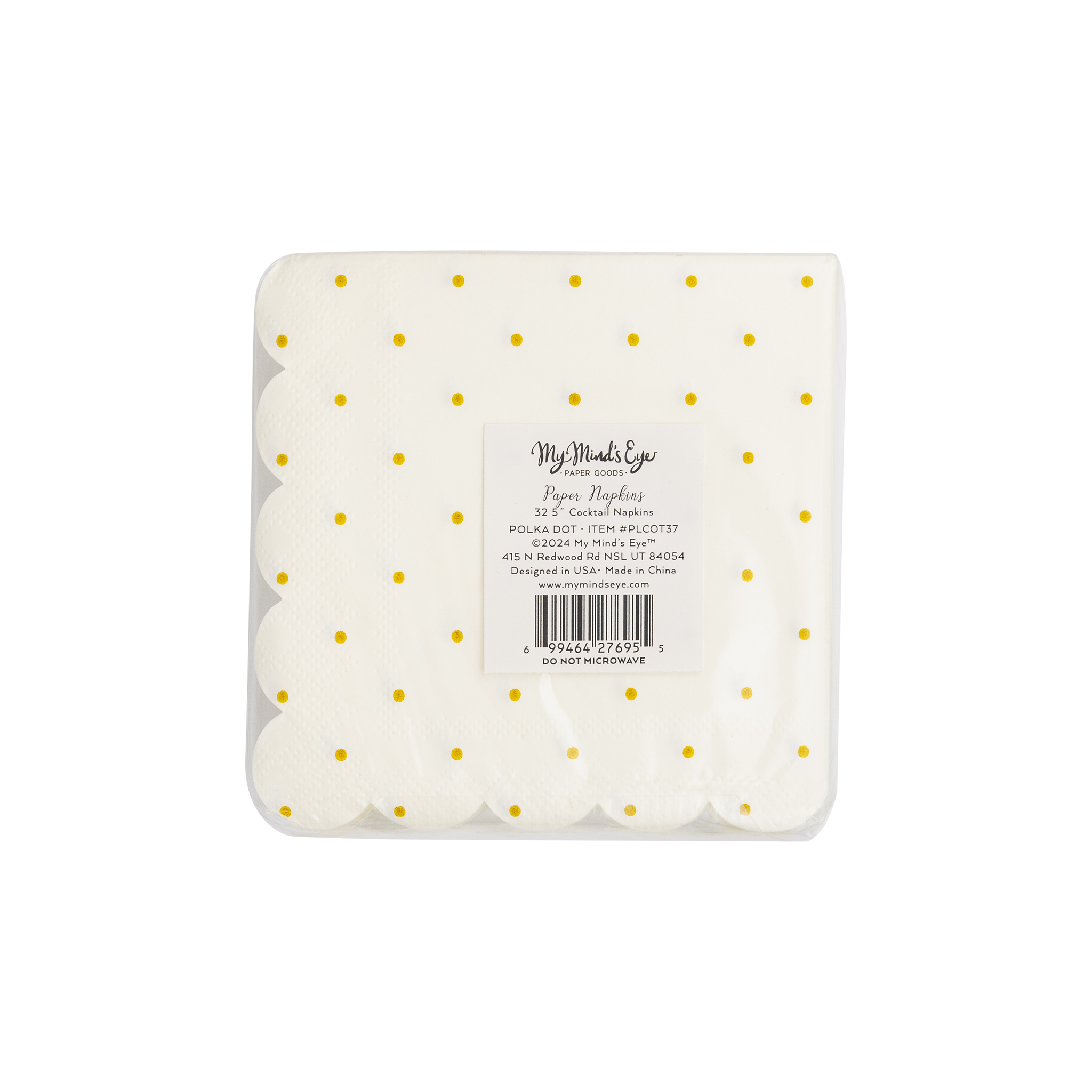 Add some whimsy to your next party with our Cottage Gold Foil Polka Dot Scalloped Paper Cocktail Napkins! These charming napkins feature a playful polka dot design in dazzling gold foil, adding a touch of whimsy to any event. Perfect for adding a touch of fun and dainty flair to your beverage service.