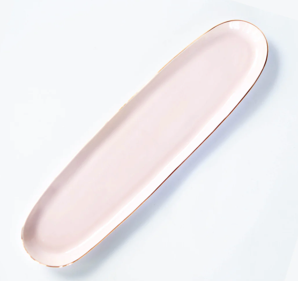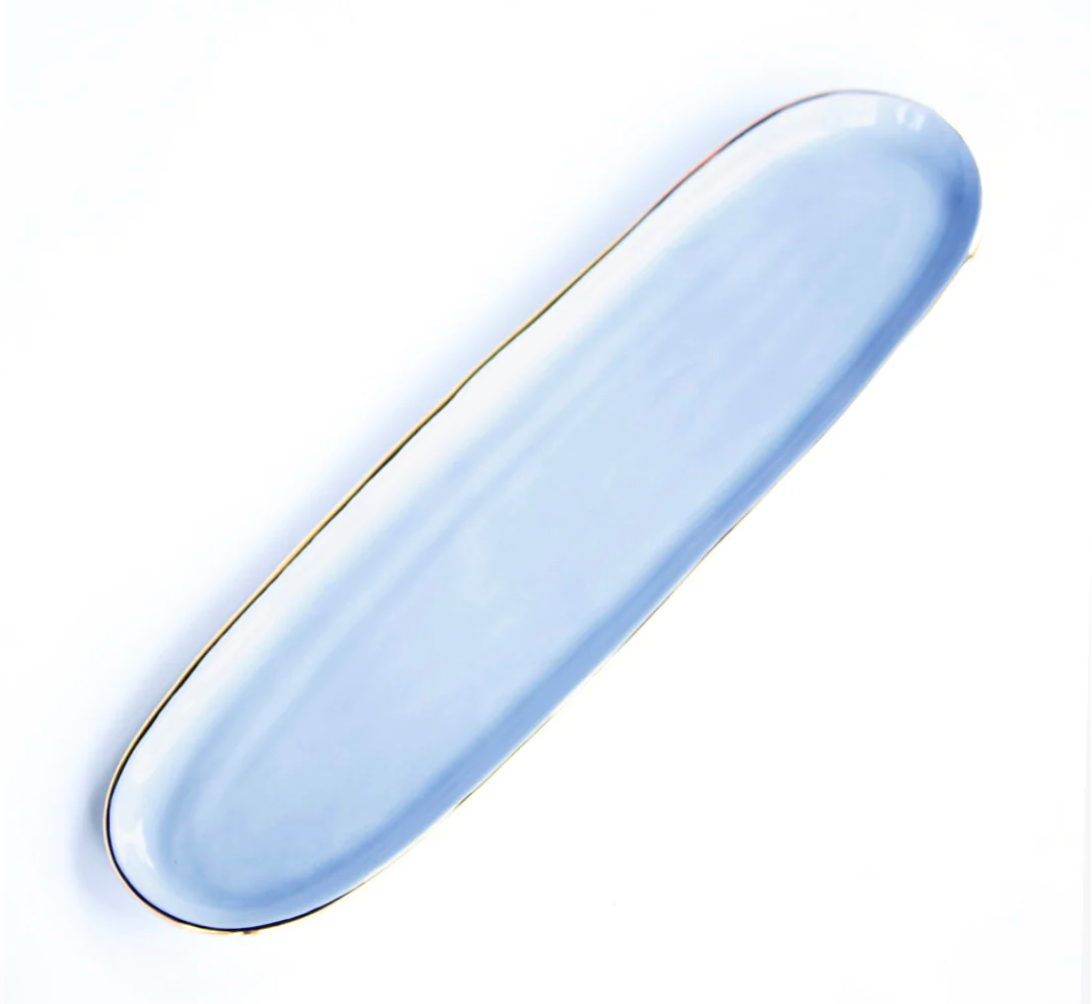 Handmade ceramic Cracker Tray Glazed with high fire stoneware clay and glazes. Adorned with low fire 22K gold luster overglaze.