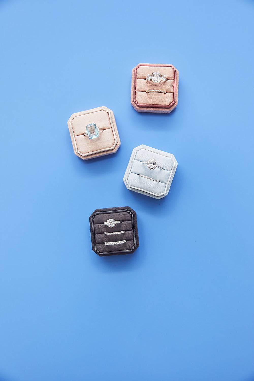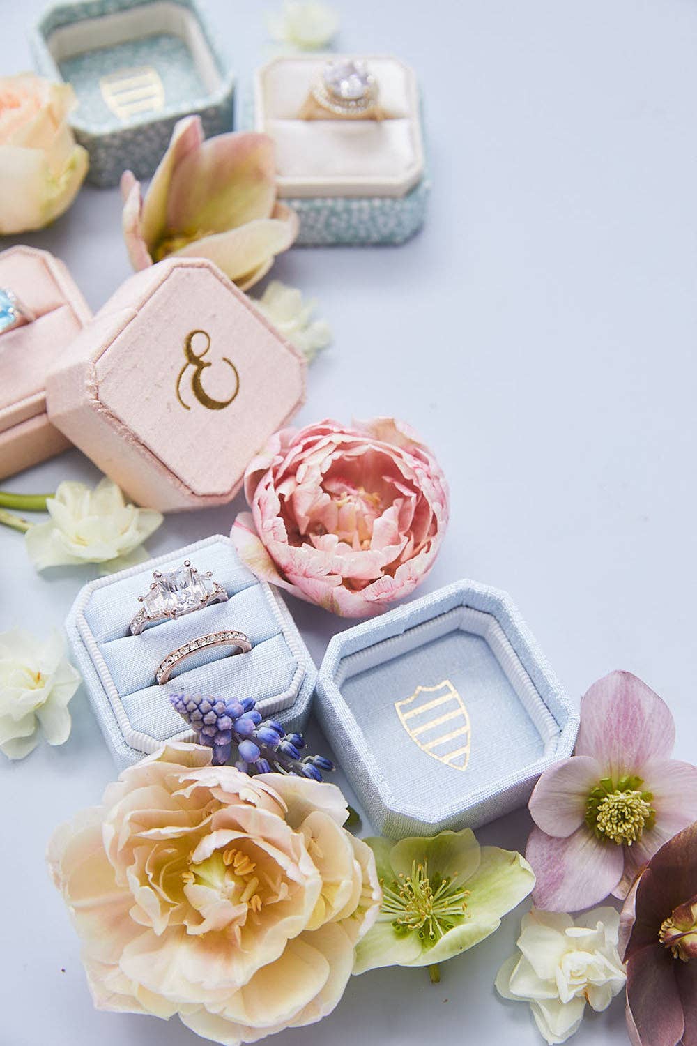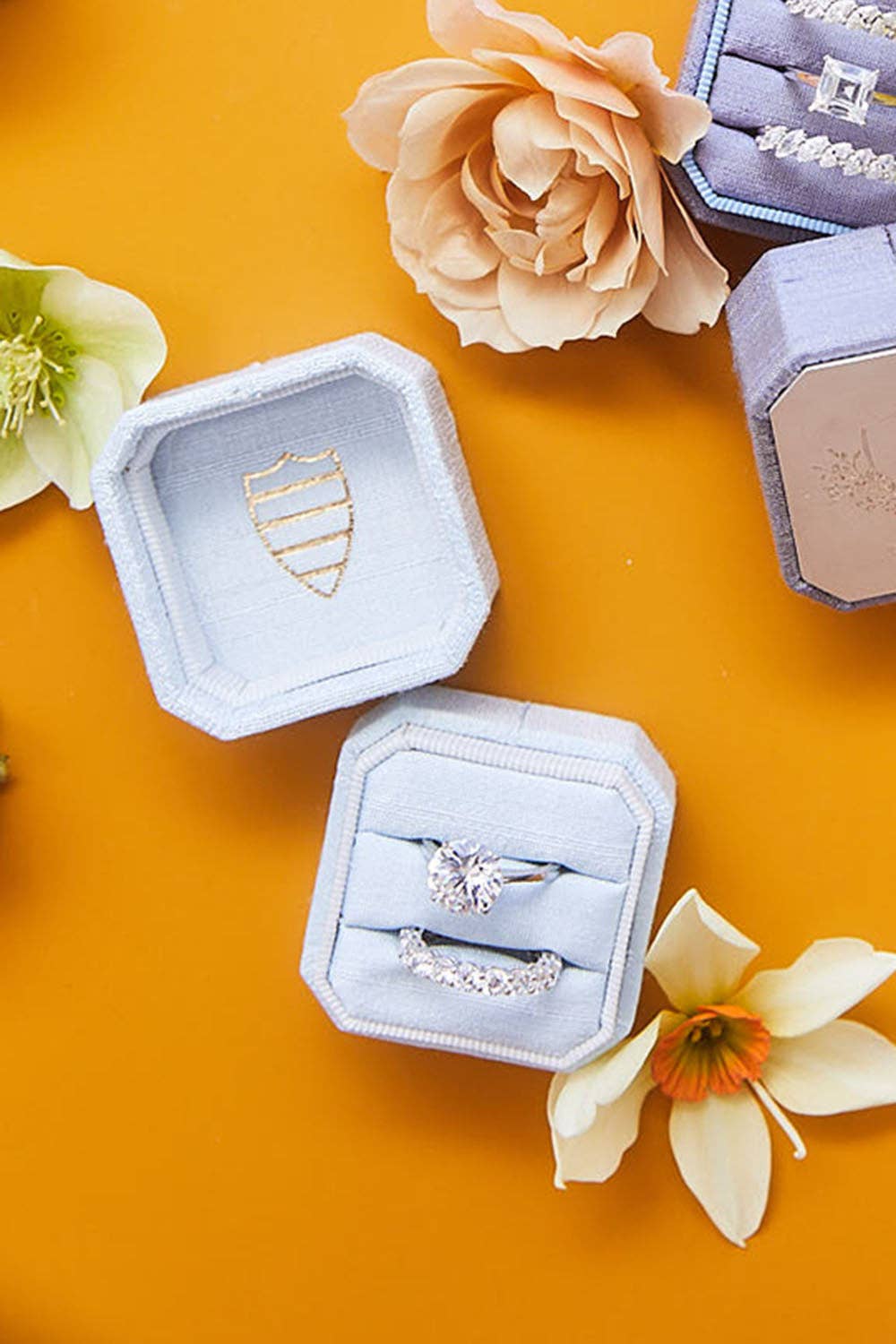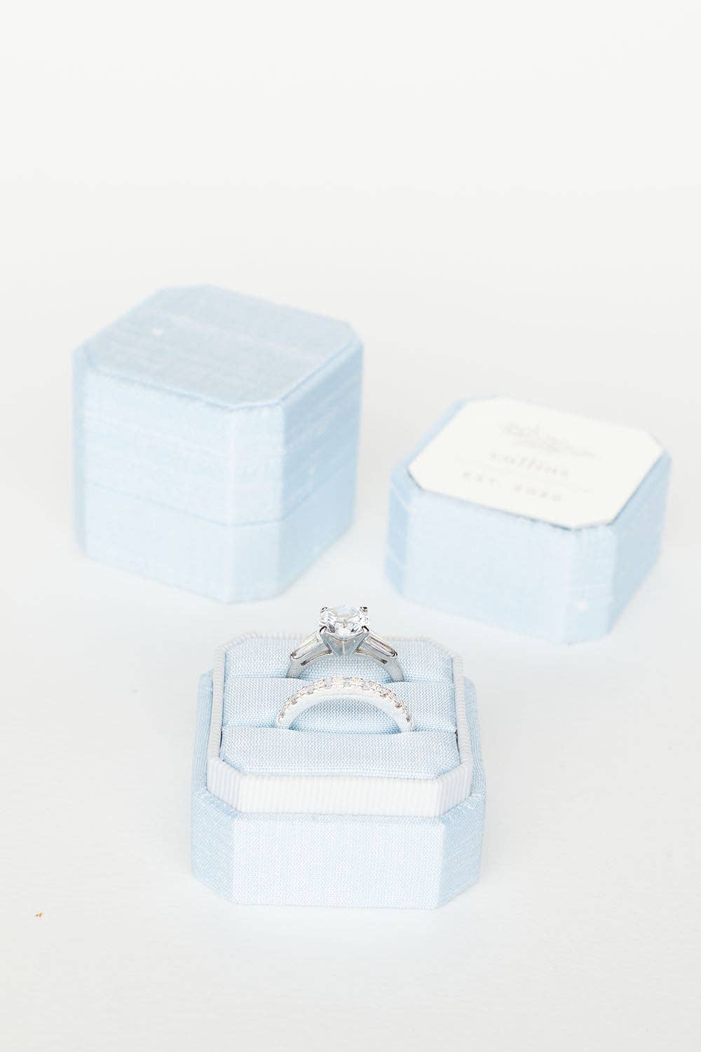 Introducing The Matteo Noble Double, a Single Stone/Solitaire Ring from The Mrs. Box. Our ring box is more than just a storage solution, it's a keepsake. Crafted from premium velvet, you have the option to customize with a choice from over 60 hand-dyed colors, personalized engravings, and foil monograms. The Matteo Noble Double represents our commitment to enduring quality and beauty. With every purchase, you are also contributing to the Never Alone Widows' ministry, making it a purchase with purpose.