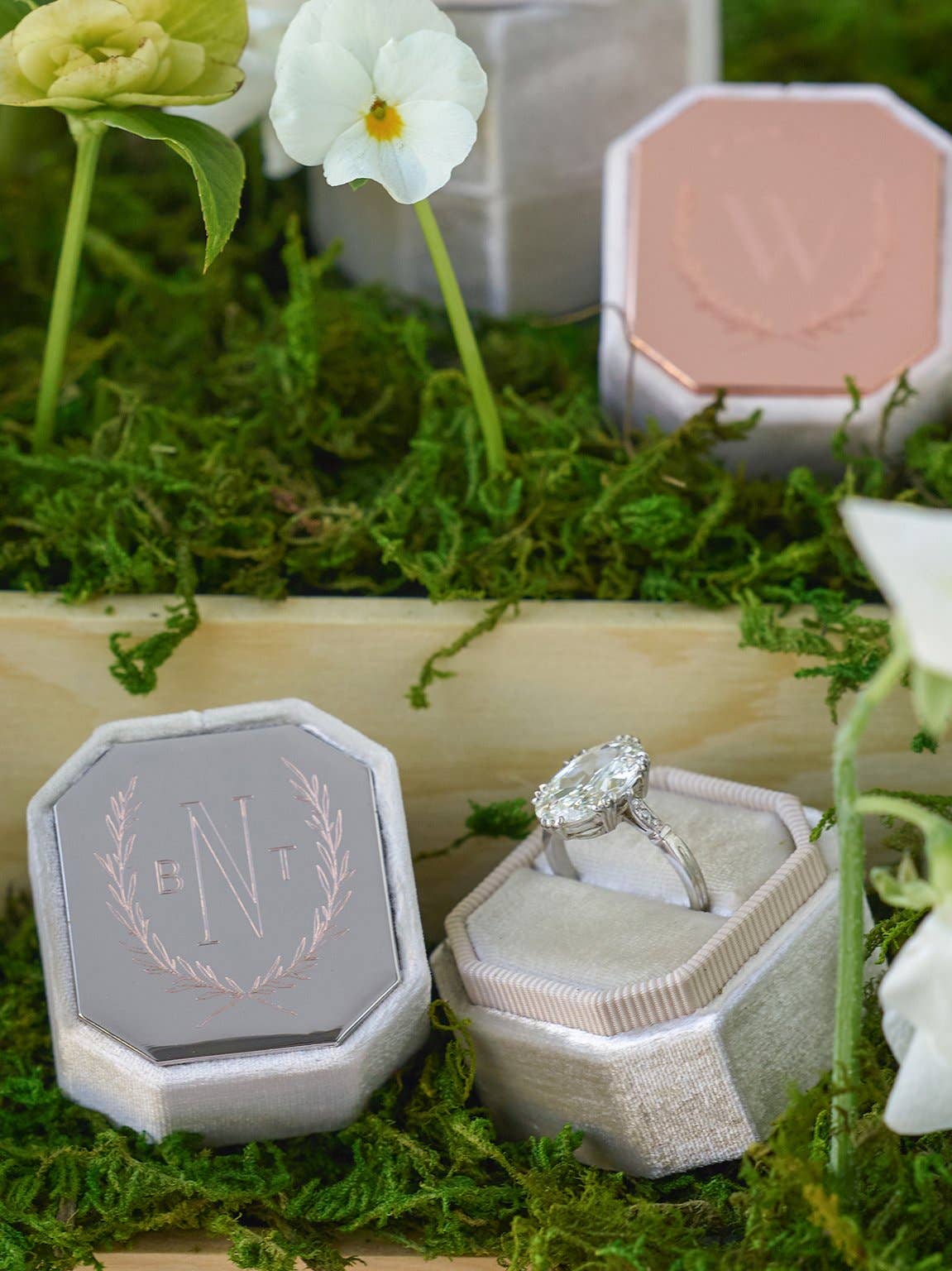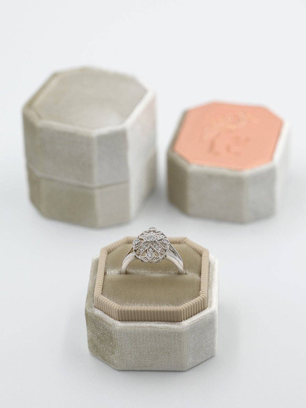 The Brightstone is like the weary ship captain at sea who has just seen the beam of the lighthouse where the starry night meets the edge of the inky blue sea. The wayfarer is coming home. * About * Fit * Monograms Our boxes are purposely petite, measuring 3.5 cm on all sides. They are individually handmade using what we consider to be the world's most extraordinary velvet. Featuring custom colors made exclusively for us, our new boxes are so exquisite they literally sparkle in person, reflecting light in the most glorious way possible. Will my ring fit? Our boxes are meant to be petite so that your ring is the central focus. They measure about 3.